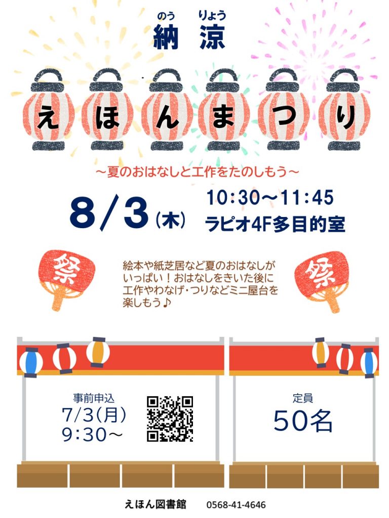 【8月3日(木)開催】納涼えほんまつり~夏のおはなしと工作をたのしもう~
