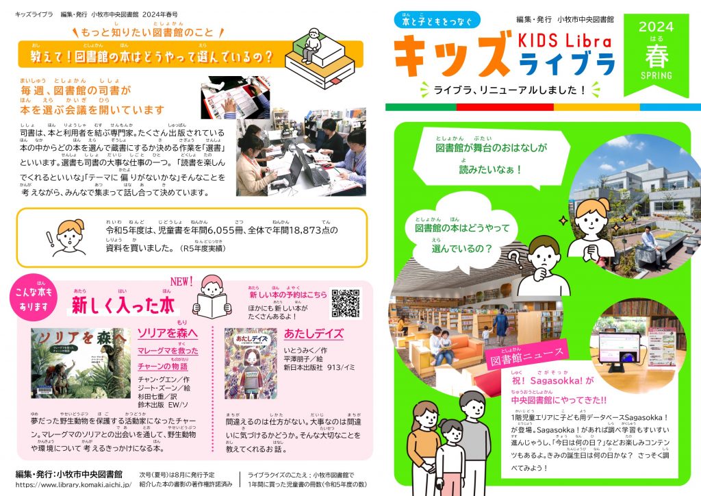 2024年5月8日 / 最終更新日 : 2025年1月6日 スタッフ 図書館だより キッズライブラ2024年春号を発行しました キッズライブラ2024年春号発行しました。 キッズライブラはリニューアル!記念すべき第1弾の特集は「図書館」です。図書館に関する本、図書館の裏側も紹介します。 予約もできるブックリスト キッズライブラのバックナンバー