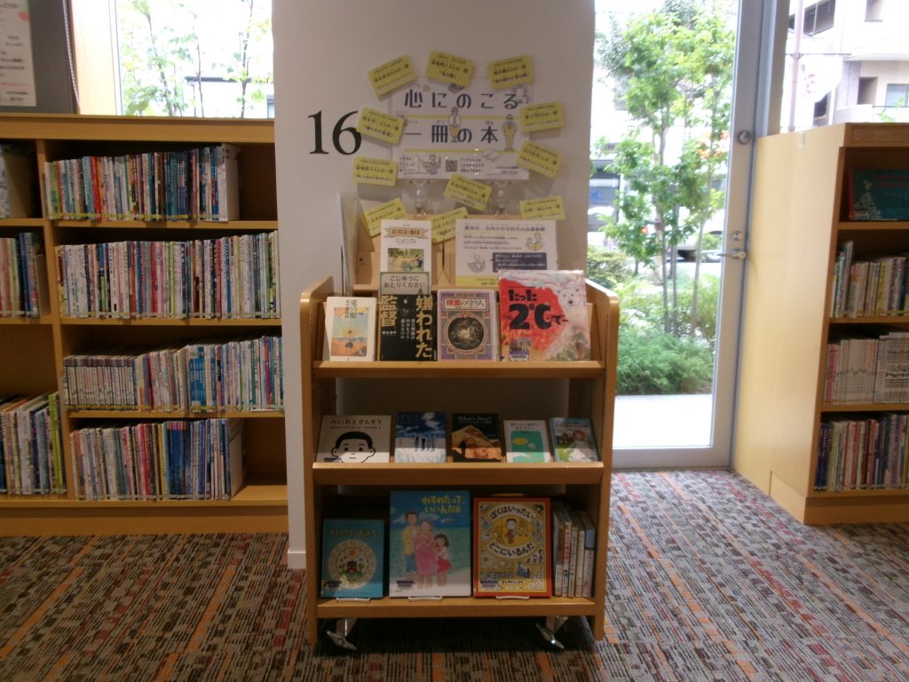 1階児童エリア図書特集「心にのこる一冊の本」を展示しています。