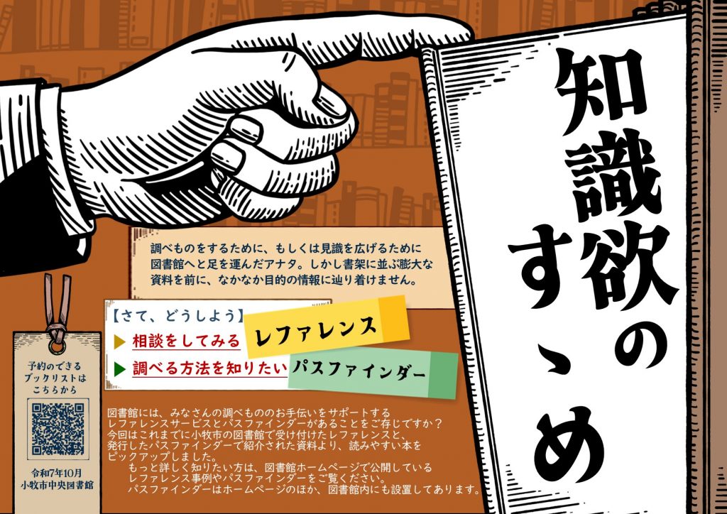 もっと詳しく知りたい方は、図書館ホームページで公開しているレファレンス事例やパスファインダーをご覧ください。パスファインダーはホームページのほか、図書館内にも設置してあります。