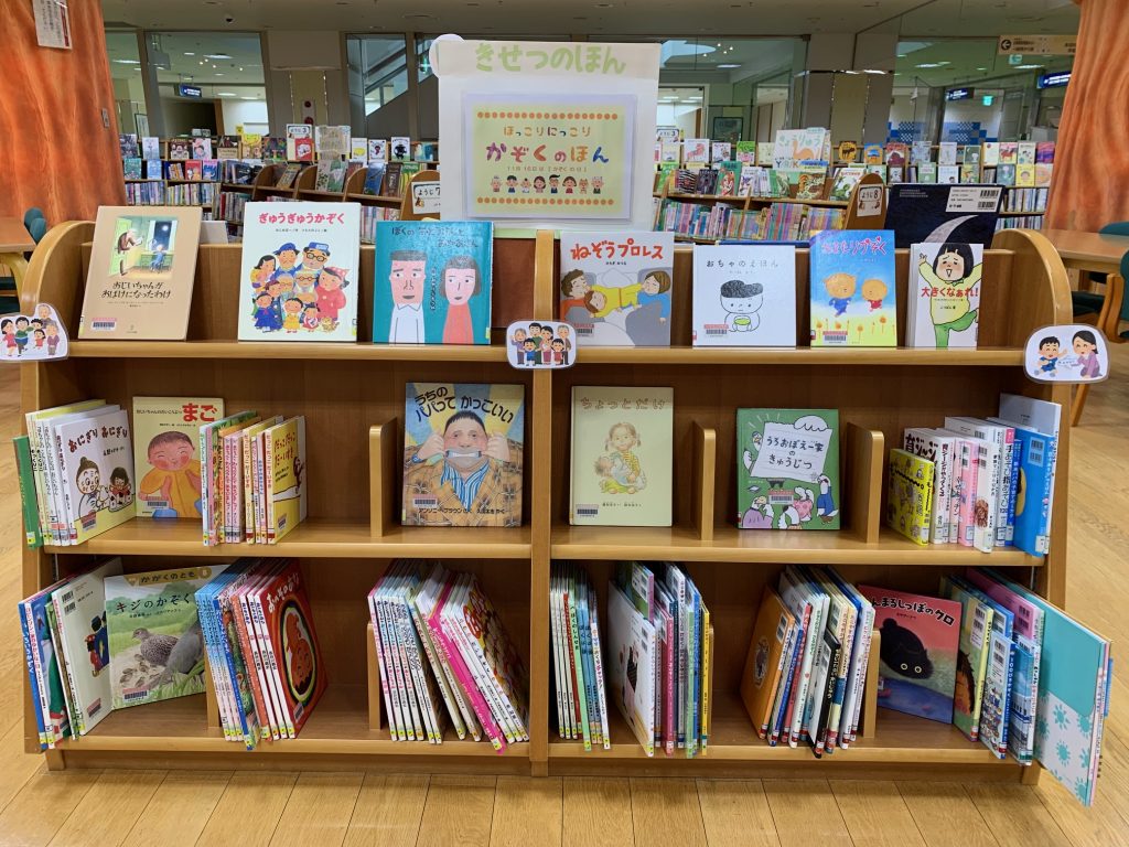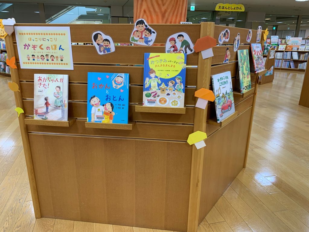 えほん図書館 V字書架コーナー特集「ほっこりにっこりかぞくのほん」