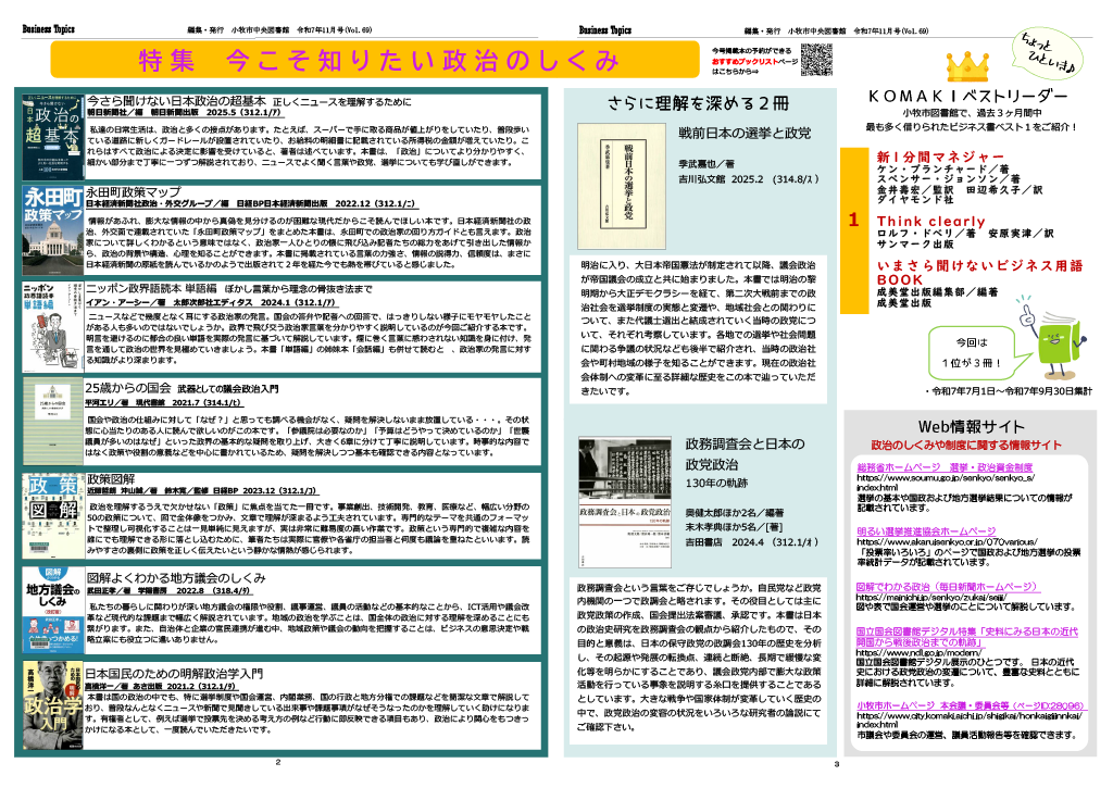 Business Topics Vol.69(PDFファイル)の特集は、「今こそ知りたい政治のしくみ」です。