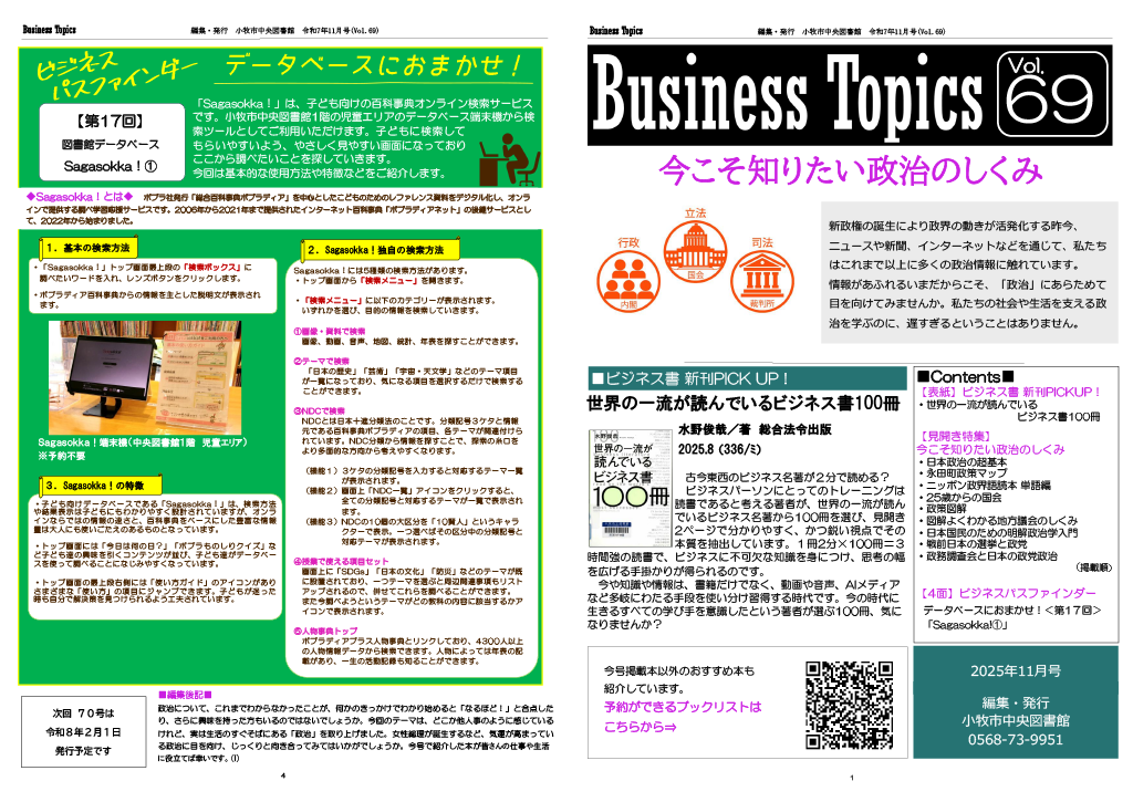 ビジネストピックスvol.69号に掲載された図書はこちらのページから予約できます。