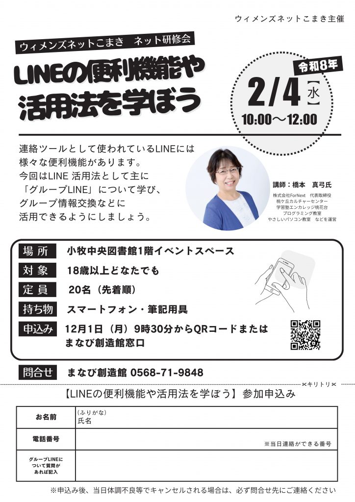 【2月4日】ウィメンズネットこまきネット研修会「LINEの便利機能や活用法を学ぼう」