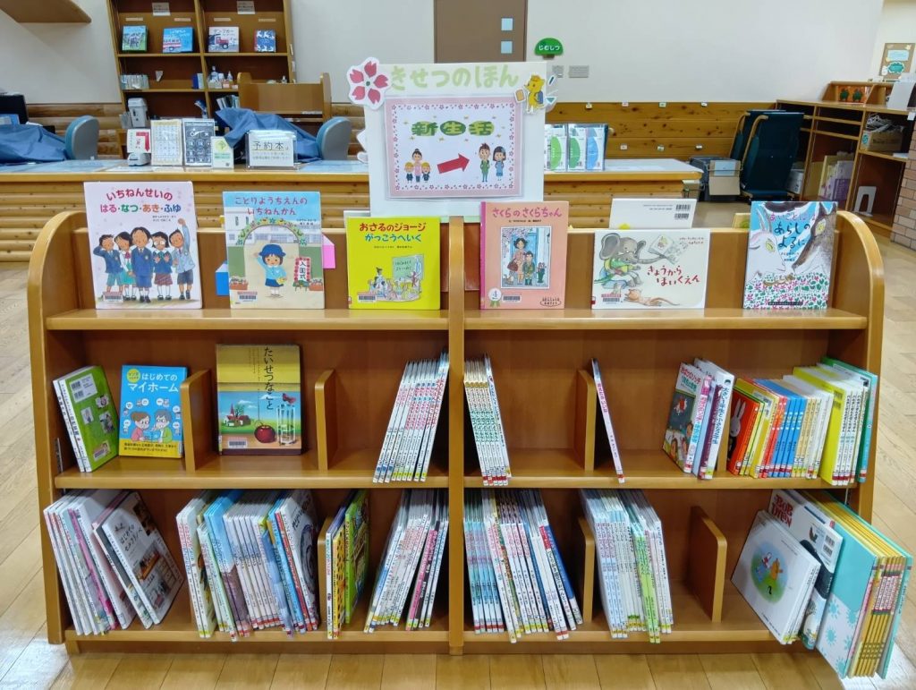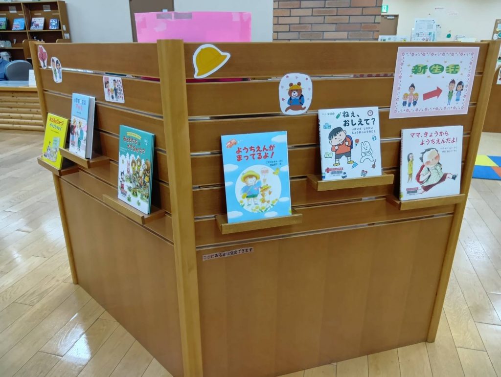 えほん図書館 V字書架コーナー特集「新生活」