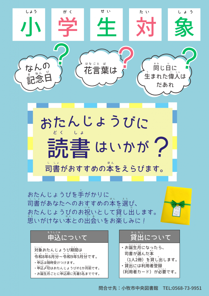 【小学生対象】おたんじょうびに読書はいかが? 司書がおすすめの本を選びます。