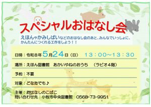 - 場所:小牧市えほん図書館(ラピオ4階) おはなしの部屋ーみるみるー